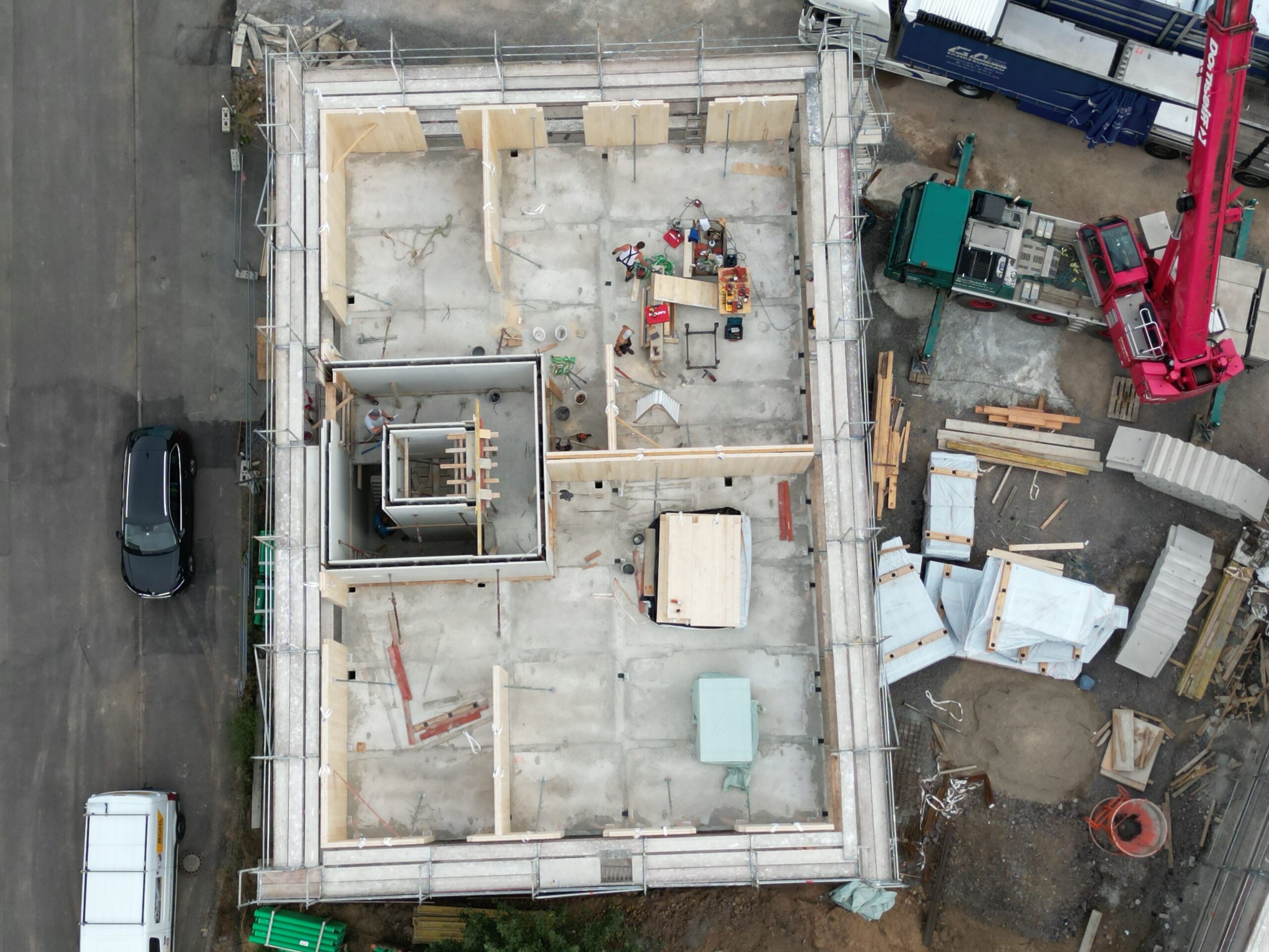 Durch ein vorher abgestimmtes Konzept mit allen Beteiligten, erstellen wir einen exakten Bauablaufplan. Alle Bauteile werden stundengenau auf die Baustelle geliefert und direkt montiert.